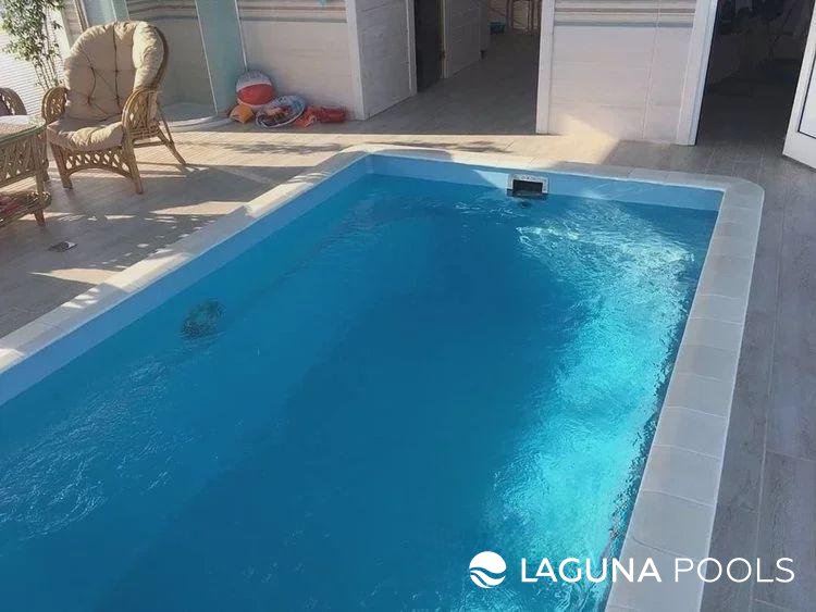 Прямоугольный композитный бассейн во внутреннем дворе